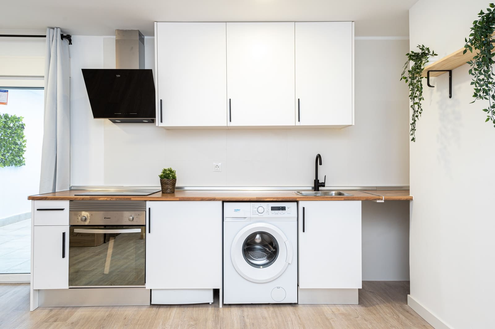 La vivienda incluye un comedor funcional, ideal para el día a día, y una cocina equipada con menaje completo, utensilios de cocina, sartenes, cafetera, copas y electrodomésticos que facilitan cualquier rutina culinaria.