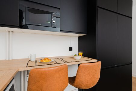 El piso cuenta con una zona de coworking para fomentar el estudio y las conexiones entre residentes, un comedor amplio y luminoso, la cocina totalmente equipada incluye menaje completo, utensilios de cocina, electrodomésticos y zona de almacenaje para facilitar la vida diaria en estancias largas. Las zonas comunes están distribuidas para permitir tanto momentos de convivencia como rincones de concentración para el trabajo.