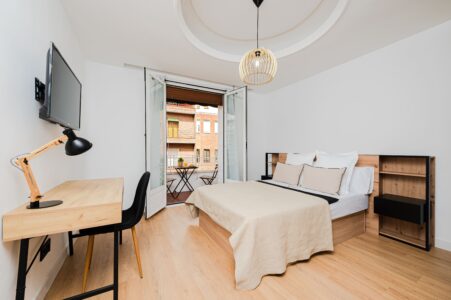 Chamberí I se sitúa en una zona residencial con cafeterías, tiendas tradicionales y excelentes conexiones de transporte público. La localización permite acceder en pocos minutos al centro y a zonas de negocio, lo que la convierte en una opción ideal para profesionales, estudiantes internacionales y nómadas digitales que buscan calma sin renunciar a la movilidad.