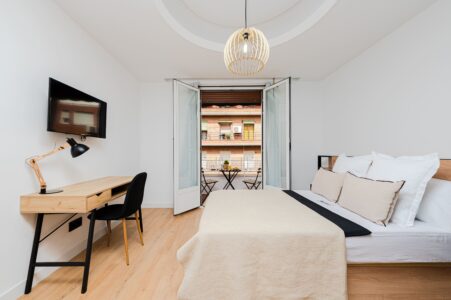 Todas las habitaciones están diseñadas para ofrecer comodidad y funcionalidad: desde áreas para concentrarte con el portátil hasta soluciones de almacenaje que facilitan estancias por meses.