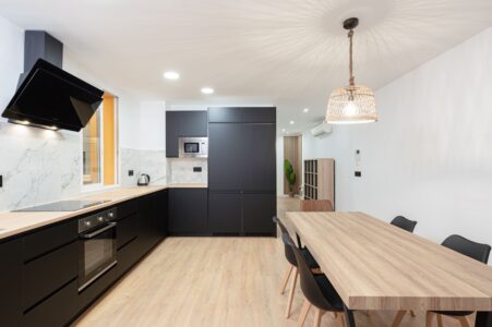 Zonas comunes: cocina equipada, comedor y espacios de convivencia