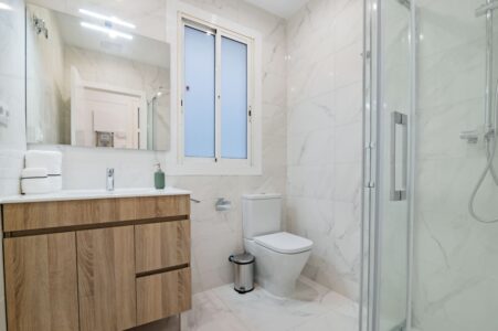 El piso dispone de dos baños compartidos, un comedor y una cocina totalmente equipada con menaje, utensilios, electrodomésticos modernos y zona de almacenaje optimizada. Las áreas comunes han sido distribuidas para combinar momentos de socialización (comidas en grupo, encuentros) con rincones de concentración para trabajar con el portátil.