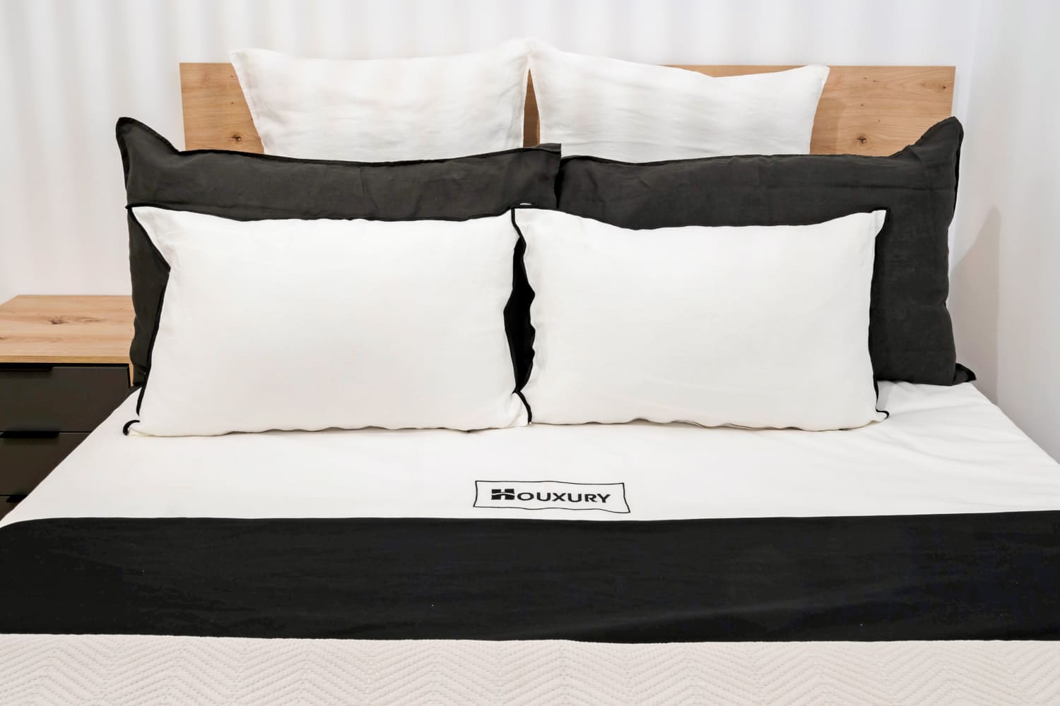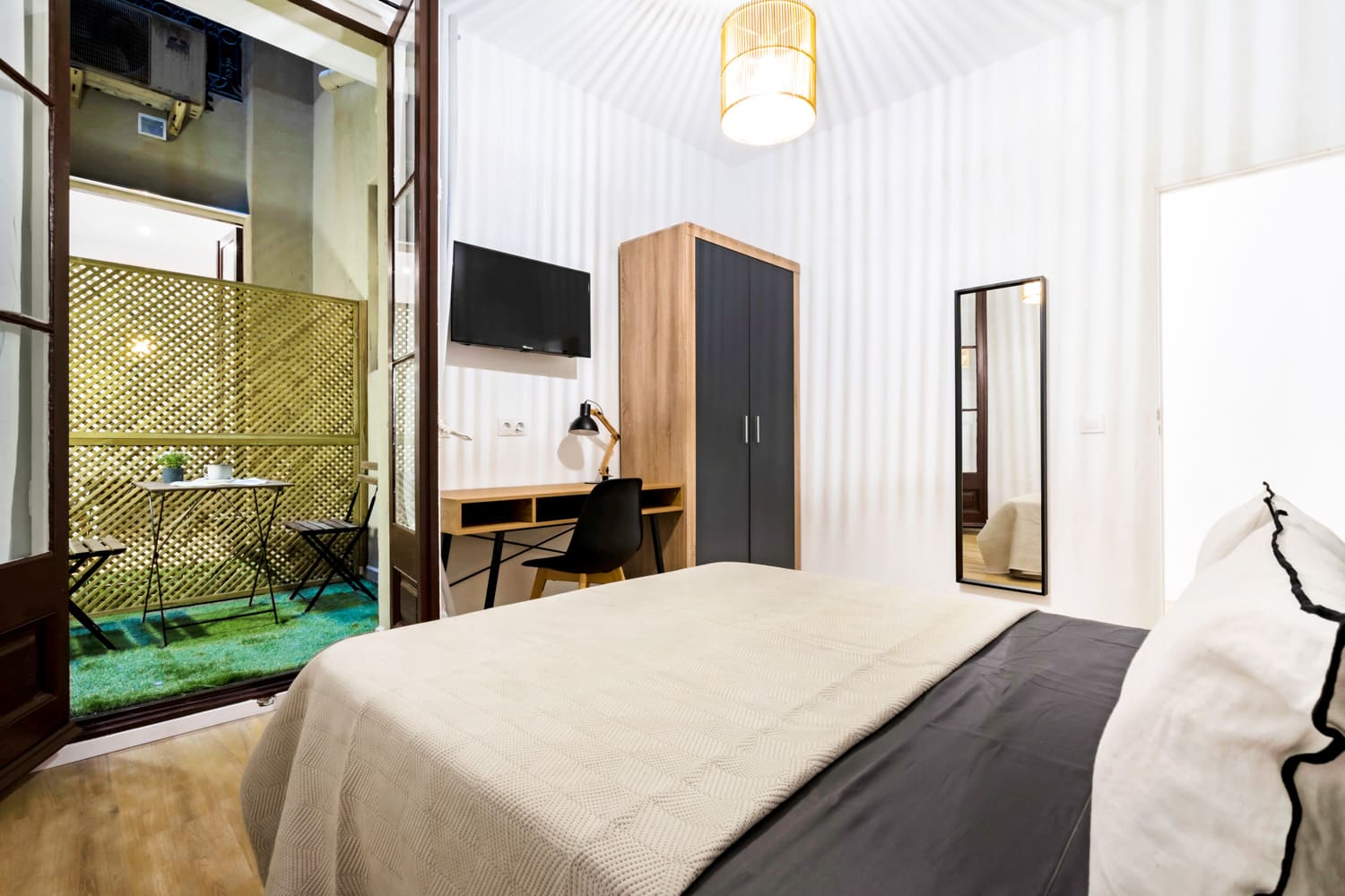 Las 12 habitaciones ofrecen configuraciones pensadas para estancias medias y largas: camas dobles con almacenaje, zonas de trabajo y distribución luminosa que favorece el descanso y el teletrabajo.