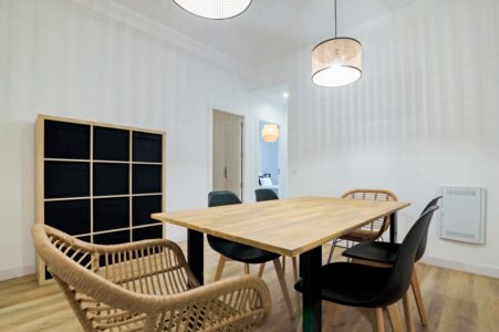 Aunque Plaza Catalunya III no dispone de comedor formal, sus zonas han sido organizadas para una convivencia eficiente: una cocina completamente equipada con menaje, electrodomésticos, utensilios y suficiente capacidad de almacenaje; rincones adaptados para comer, trabajar o socializar; y áreas de paso amplias que mantienen la sensación de amplitud incluso con varios residentes.