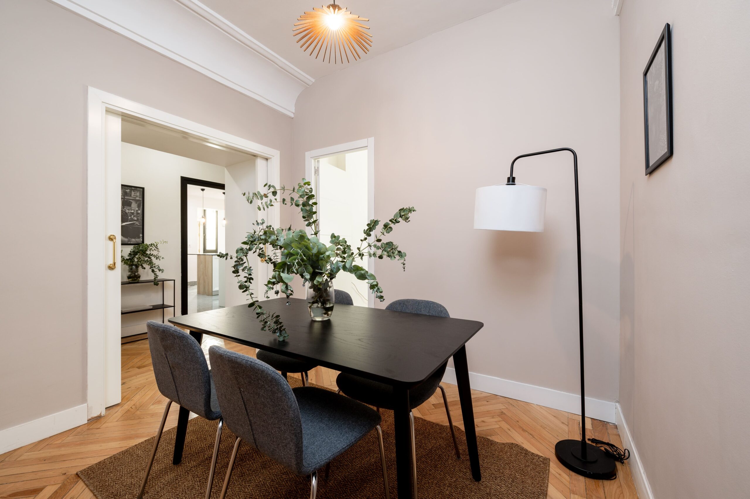 Situado en uno de los rincones más equilibrados de Chamberí, Donoso Cortés ofrece un ambiente cómodo y acogedor. Dispone de 6 habitaciones, una de ellas con baño privado (H6), y 3 baños compartidos adicionales.