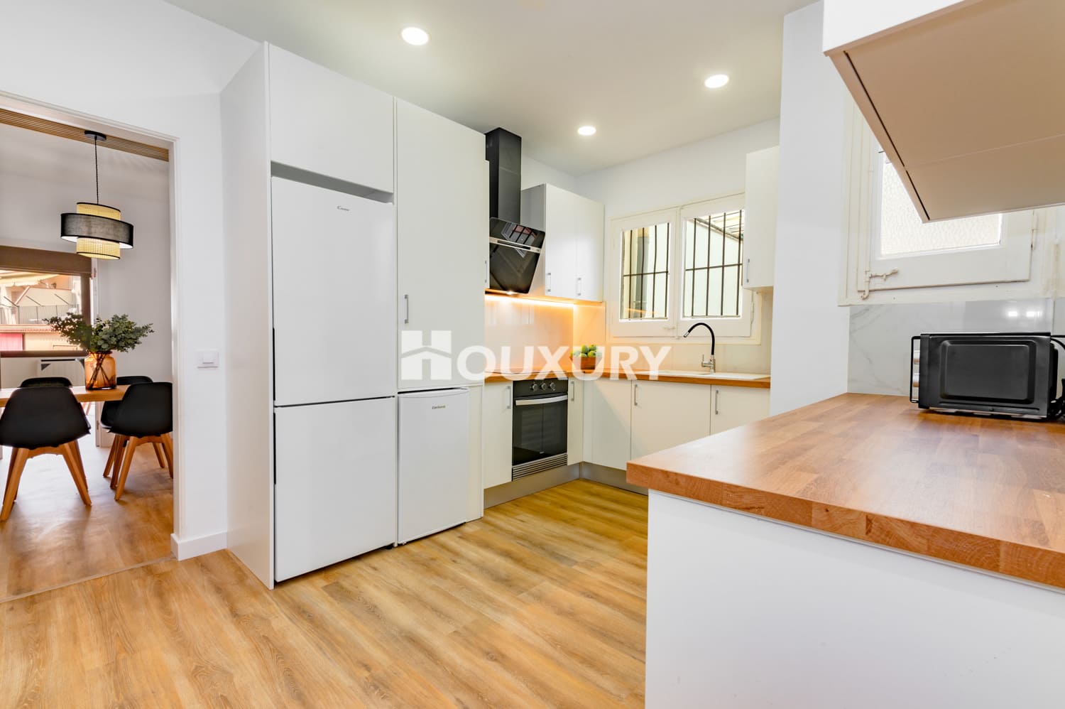 El piso dispone de un comedor acogedor, perfecto para compartir comidas y momentos, y una cocina totalmente equipada con menaje completo, electrodomésticos, utensilios y zona de almacenaje. Aunque el espacio es funcional y compacto, está optimizado para el uso diario de varios residentes, combinando practicidad y confort.