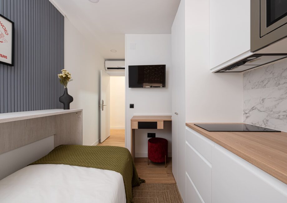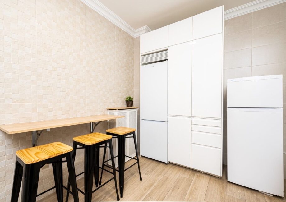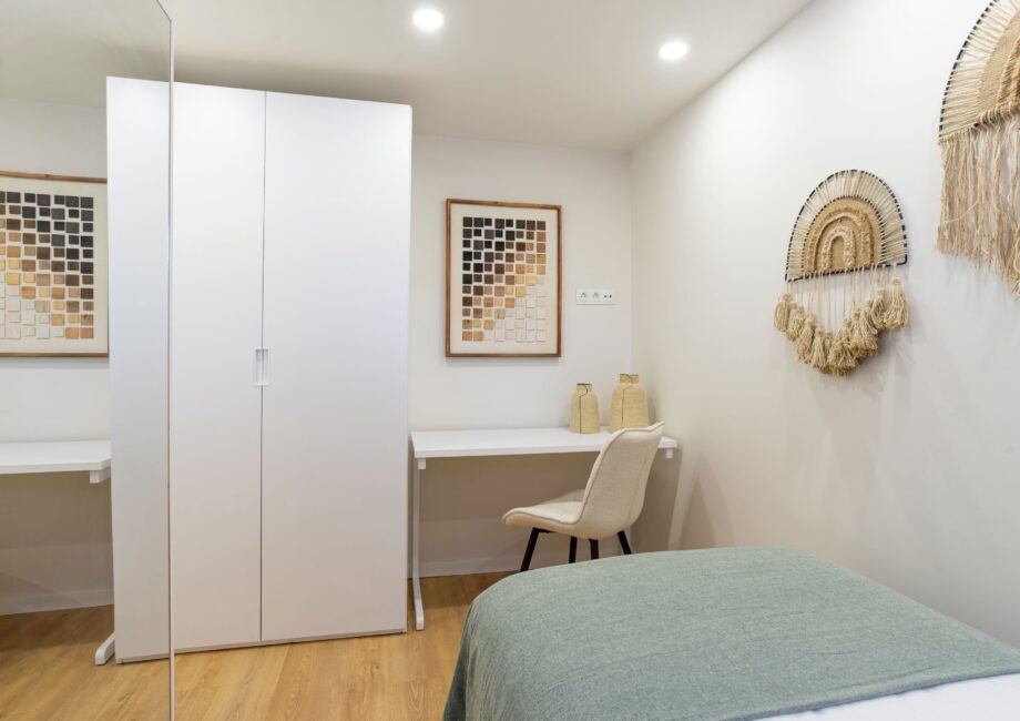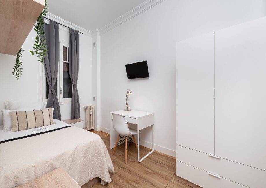 - Servicios Bathroom comforts, Bathroom essentials, Doorman, Electronic and physical key, Heating, Kitchen and hygiene supplies, Living room, Shared and private bathroom, Shared and private kitchen, Terrace, Wi-Fi