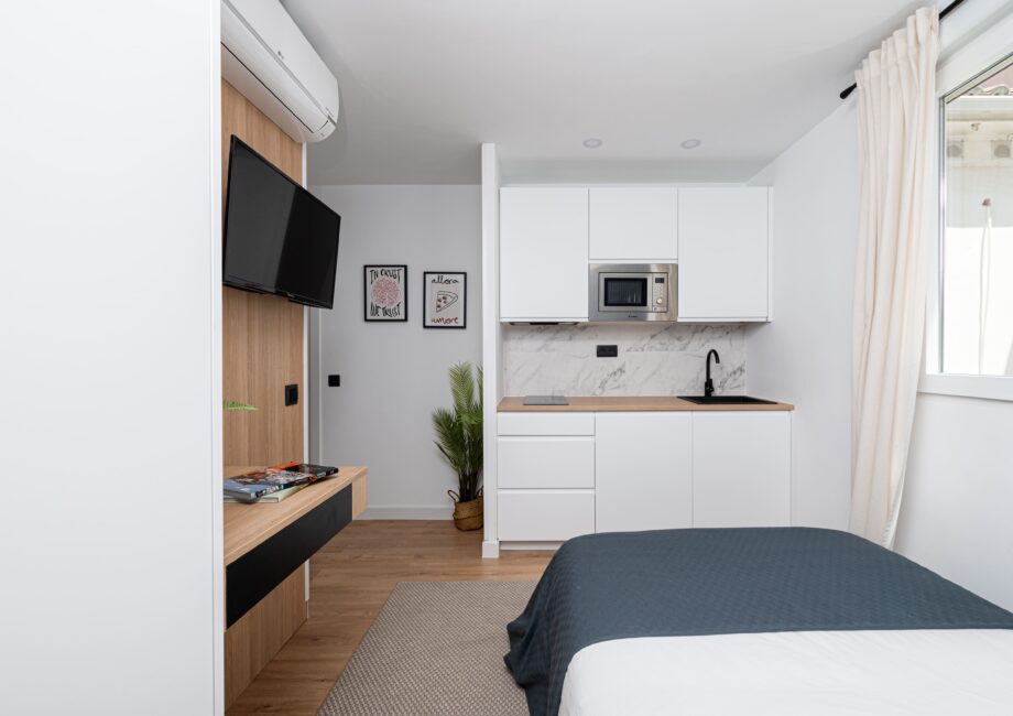 - Servicios Bathroom comforts, Bathroom essentials, Electronic and physical key, Heating, Kitchen and hygiene supplies, Living room, Private kitchen and bathroom, Spectacular views of the city center, Terrace, Wi-Fi